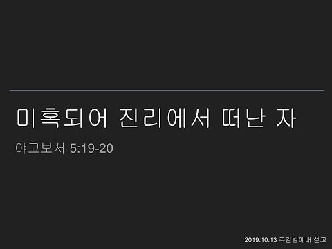 본문 : 야고보서 5:19-20 20191013 미혹되어 진리에서 떠난 자 |