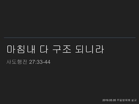 본문 : 사도행전 27:33-44 20190505 마침내 다 구조 되니라 |