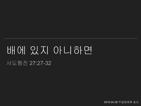 본문 : 사도행전 27:27-32 20190428 배에 있지 아니하면 |