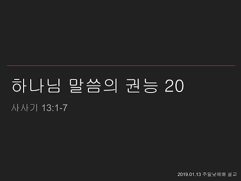 본문 : 사사기 13:1-7 20190113 하나님 말씀의 권능 20 |