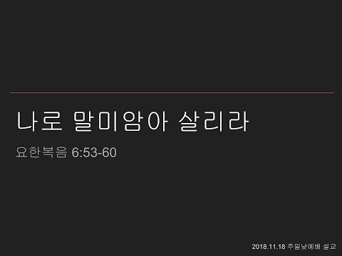 본문 : 요한복음 6:53-60 20181118 나로 말미암아 살리라 (추수감사주일예배) |