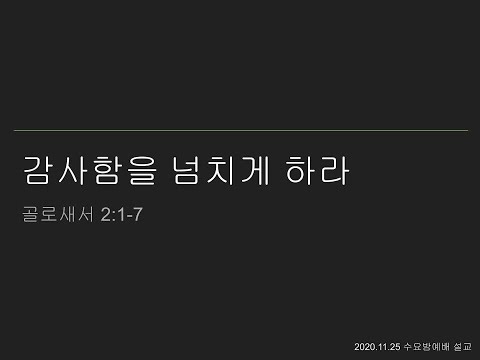 본문 : 골로새서 2:1-7 20201125 감사함을 넘치게 하라 |