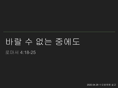 본문 : 로마서 4:18-25 20200429 바랄 수 없는 중에도 |