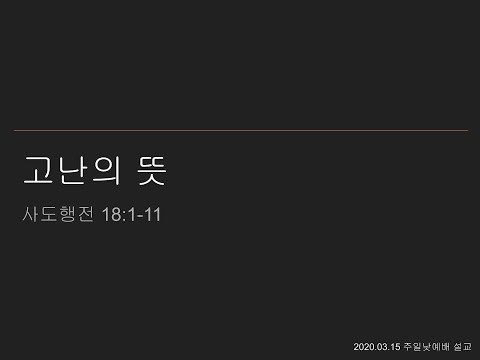 본문 : 사도행전 18:1-11 20200315 고난의 뜻 |