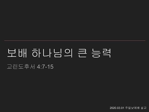 본문 : 고린도후서 4:7-15 20200301 보배, 하나님의 큰 능력 |