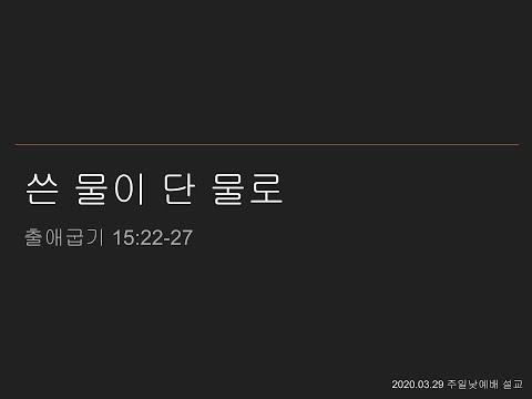본문 : 출애굽기 15:22-27 20200329 쓴 물이 단 물로 |