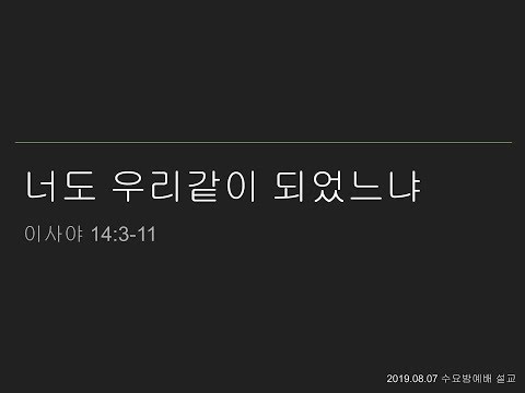 본문 : 이사야 14:3-11 20190807 너도 우리같이 되었느냐 |