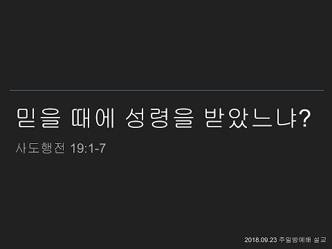 본문 : 사도행전 19:1-7 20180923 믿을 때에 성령을 받았느냐? |
