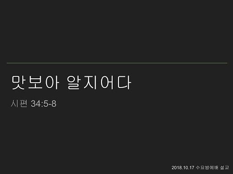 본문 : 시편 34:5-8 20181017 맛보아 알지어다 |